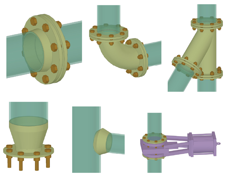 - Tüm fittingler parametrik olarak çalışır ve boru boyutlarında bir değişiklik olduğunda veya yeri değiştiğinde güncellenir