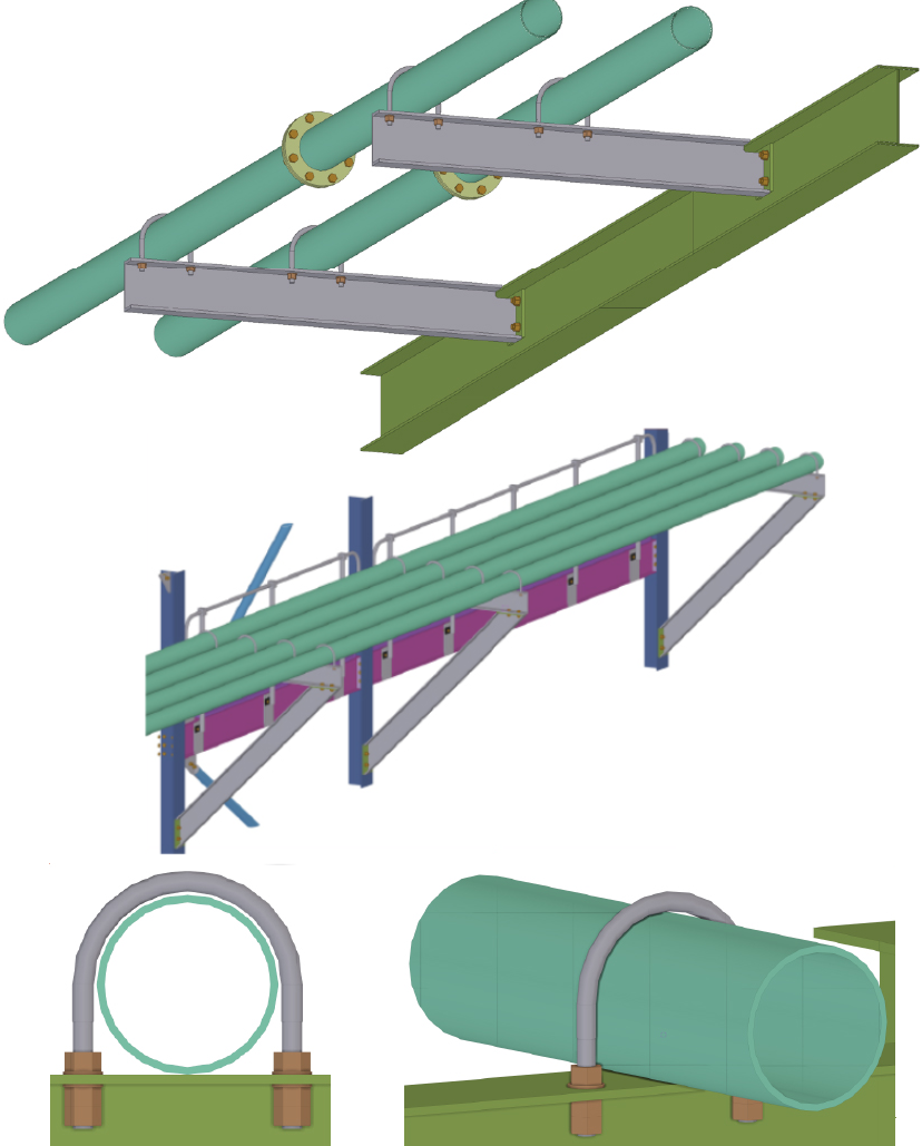 Borulama, Konveyörler, Portal Vinçler, Mafsallı Çerçeve Yapılar, Basınçlı Kaplar, Tanklar ve mekanik ekipmanlar da dahil, tekrarlanan tasarım süreçlerini otomatikleştiren Tekla eklentileri.