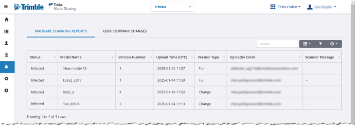 Yüklenen dosyaların malware taramasından geçirilmesi, Tekla Model Paylaşımı'nda eklenen yeni özellikler arasında. Ayrıca, Tekla Online Admin Tool 'da Model Paylaşımında Yönetici Rölü aracılılığıyla erişim kontrolleri yönetimi geliştirildi ve Model Paylaşım Yönetim Konsolu altında yöneticilerin birden fazla kuruluşu yönetmesine olanak sağlandı.